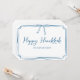 Celebrate Hanukkah with elegance and charm using this customisable Hanukkah greeting card. Featuring a delicate blue wavy border and a sweet bow detail, this card brings a touch of warmth and sophistication to your holiday wishes. Personalise it with your family name to make it truly special. Perfect for sending heartfelt messages to loved ones this season! Ideal for families seeking a modern yet traditional touch for their Hanukkah greetings.