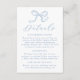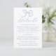Keep guests informed with this elegant soft blue bow wedding details card. The delicate blue bow at the top brings a subtle pop of colour to this clean and modern design. Customise with reception information, dress code, or your wedding website—a graceful addition to coastal, spring, or classic wedding themes.