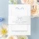 Elegant wedding invitation belly band featuring a hand-drawn soft blue bow at the top on a white background. The couple’s names and wedding date are displayed below in matching blue lettering, creating a fresh and timeless look. Perfect for spring and summer weddings, this minimalist belly band adds a refined finishing touch to your wedding stationery suite. Personalise with your details to beautifully coordinate with your wedding theme.