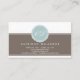 Sleek, modern and elegant business card with ornate blue monogram badge and brown background. This business card is perfect for interior designers, wedding planners or any other occupations.