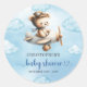 Elegant Blue Brown Teddy Bear Pilot Boy Baby Showe Classic Round Sticker