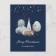 Cute blue Merry Christmas postcard featuring a watercolor winter scene with a buck and a doe in a snowy forest and shining stars above them. Easily personalise this blue holiday postcard with your family name, return address and additional text as desired.
