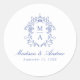 Elegant Blue Chinoiserie Crest Monogram Wedding Classic Round Sticker