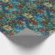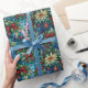Elegant blue christmas coquette bow stained glass wrapping paper