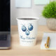 This elegant Merry Christmas party paper cup features chic blue cursive script below a beautiful watercolor drawing of holiday ornaments with a bow. Customise these elegant business holiday gifts for clients or friends and family within your company.