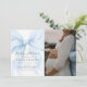 Elegant Blue Coquette Bow Girl Baby Shower Photo Invitation