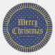Elegant Blue Decorative Geometric Merry Christmas Classic Round Sticker