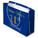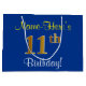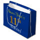Elegant, Blue, Faux Gold 11th Birthday + Name Large Gift Bag