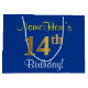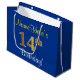 Elegant, Blue, Faux Gold 14th Birthday + Name Large Gift Bag