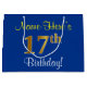 Elegant, Blue, Faux Gold 17th Birthday + Name Large Gift Bag