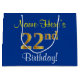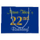Elegant, Blue, Faux Gold 22nd Birthday + Name Large Gift Bag