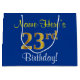 Elegant, Blue, Faux Gold 23rd Birthday + Name Large Gift Bag
