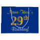 Elegant, Blue, Faux Gold 29th Birthday + Name Large Gift Bag