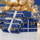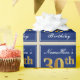 This simple and elegant wrapping paper design features a personalised message like "NameHere’s 30th Birthday" (with the "30th" having a faux/imitation gold-like colouring look) within a blue-coloured square area featuring a simple border outline. The name is in an elegant white-coloured script-like text, and can be customised. Wrapping paper like this could perhaps be used when wrapping birthday gifts for somebody who is celebrating their thirtieth birthday. [~Z0000221]