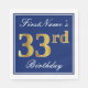 Elegant Blue, Faux Gold 33rd Birthday; Custom Name Napkin
