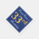 This simple and elegant paper napkin design features a message like "FirstName’s 33rd Birthday" (with the "33rd" having a faux gold-like colouring) within a blue-coloured square area featuring a simple border outline. The name is in white-coloured script-like text, and can be personalised. Napkins like these could perhaps be used at a birthday party for somebody who is celebrating their thirty third birthday. [~Z0000141]