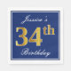 Elegant Blue, Faux Gold 34th Birthday; Custom Name Napkin