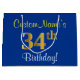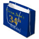Elegant, Blue, Faux Gold 34th Birthday + Name Large Gift Bag
