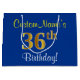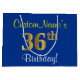 Elegant, Blue, Faux Gold 36th Birthday + Name Large Gift Bag
