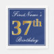 Elegant Blue, Faux Gold 37th Birthday; Custom Name Napkin