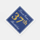 This simple and elegant paper napkin design features a message like "FirstName’s 37th Birthday" (with the "37th" having a faux gold-like colouring) within a blue-coloured square area featuring a simple border outline. The name is in white-coloured script-like text, and can be personalised. Napkins like these could perhaps be used at a birthday party for somebody who is celebrating their thirty seventh birthday. [~Z0000141]