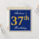 Elegant, Blue, Faux Gold 37th Birthday + Name Invitation
