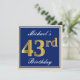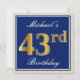 Elegant, Blue, Faux Gold 43rd Birthday + Name Invitation