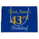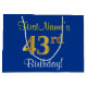 Elegant, Blue, Faux Gold 43rd Birthday + Name Large Gift Bag
