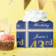 This simple and elegant wrapping paper design features a personalised message like "Jessica’s 43rd Birthday" (with the "43rd" having a faux/imitation gold-like colouring look) within a blue-coloured square area featuring a simple border outline. The name is in an elegant white-coloured script-like text, and can be customised. Wrapping paper like this could perhaps be used when wrapping birthday gifts for somebody who is celebrating their forty third birthday. [~Z0000221]