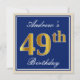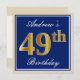 Elegant, Blue, Faux Gold 49th Birthday + Name Invitation