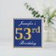 Elegant, Blue, Faux Gold 53rd Birthday + Name Invitation