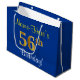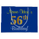 Elegant, Blue, Faux Gold 56th Birthday + Name Large Gift Bag