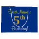 Elegant, Blue, Faux Gold 5th Birthday; Custom Name Large Gift Bag
