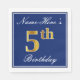 Elegant Blue, Faux Gold 5th Birthday + Custom Name Napkin