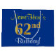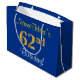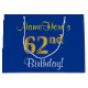 Elegant, Blue, Faux Gold 62nd Birthday + Name Large Gift Bag