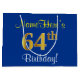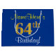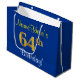 Elegant, Blue, Faux Gold 64th Birthday + Name Large Gift Bag