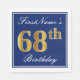 This simple and elegant paper napkin design features a message like "FirstName’s 68th Birthday" (with the "68th" having a faux gold-like colouring) within a blue-coloured square area featuring a simple border outline. The name is in white-coloured script-like text, and can be personalised. Napkins like these could perhaps be used at a birthday party for somebody who is celebrating their sixty eighth birthday. [~Z0000141]