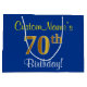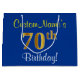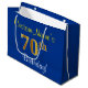 Elegant, Blue, Faux Gold 70th Birthday + Name Large Gift Bag