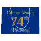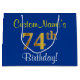 Elegant, Blue, Faux Gold 74th Birthday + Name Large Gift Bag