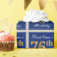 This simple and elegant wrapping paper design features a personalised message like "FirstName’s 76th Birthday" (with the "76th" having a faux/imitation gold-like colouring look) within a blue-coloured square area featuring a simple border outline. The name is in an elegant white-coloured script-like text, and can be customised. Wrapping paper like this could perhaps be used when wrapping birthday gifts for somebody who is celebrating their seventy sixth birthday. [~Z0000221]