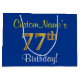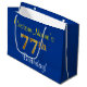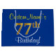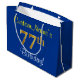 Elegant, Blue, Faux Gold 77th Birthday + Name Large Gift Bag
