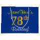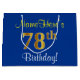 Elegant, Blue, Faux Gold 78th Birthday + Name Large Gift Bag
