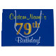 Elegant, Blue, Faux Gold 79th Birthday + Name Large Gift Bag