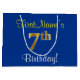 Elegant, Blue, Faux Gold 7th Birthday; Custom Name Large Gift Bag