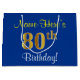 Elegant, Blue, Faux Gold 80th Birthday + Name Large Gift Bag