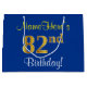 Elegant, Blue, Faux Gold 82nd Birthday + Name Large Gift Bag