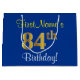 Elegant, Blue, Faux Gold 84th Birthday + Name Large Gift Bag