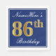 Elegant Blue, Faux Gold 86th Birthday; Custom Name Napkin