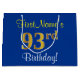 Elegant, Blue, Faux Gold 93rd Birthday + Name Large Gift Bag