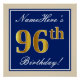 Elegant, Blue, Faux Gold 96th Birthday + Name Poster